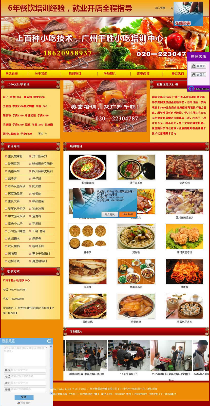 廣州千勝小吃培訓中心座落在風景秀麗的廣州天河區(qū)。專業(yè)從事飲品、特色小吃、地方小吃、私房菜、地方特色飲食的培訓研究機構,擁有多名專業(yè)培訓老師,都擁有精湛的技術和豐富的開店經(jīng)驗。中華美食源遠流長,博大精深。五千年傳統(tǒng)文化成就了多種不同的美食文化,廣州千勝小吃培訓中心作為餐飲行業(yè)里的嬌嬌者,為傳承中華美食文化,匯集國內(nèi)外餐飲食品行業(yè)研發(fā),教育培訓,運營管理,餐飲策劃,特色小吃培訓等各方面的專家學者。從事美食文化的傳播與推廣工作,以倡導美食新概念和標準化。把“傳統(tǒng)與時尚,美味與健康”完美結合,把美食制作推向簡易和標準化的新高度,讓每一個人都會做美食,使客戶達到零風險創(chuàng)業(yè),創(chuàng)造高回報的價值,真正達到相互共贏。